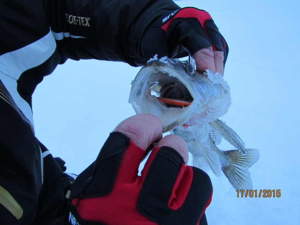 Хотя вот фото 17 января 2015, нашли окуня у вешек, к вечеру судак проклюнулся, и на следующий день было несколько поимок. В воскресенье уехали, но точно знаю, что вторник-среду там судака драли конкретно, как обычно, куча народу + несколько подушек. Заодно с охраной заповедника воевали, потому что в среду после обеда стая сдвинулась за вешки...:D:D:D Вот что это было? Это же не одиночки. Правда можешь сказать, что это 2015-й, там стаи судака по всей Рыбинке бродили 8-), но тем не менее...