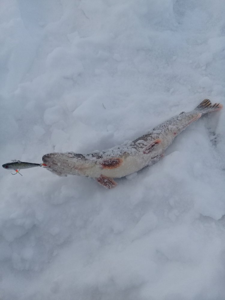4. Всем привет.Сегодня с утра на точке где заканчивали вчера вечером.Утром в 8.30 первая лунка и первый судачек на льду.Подходы есть,но клевать категорически отказывается.Дальнейшие поиски принесли лишь пару некрупных щучек и одного окунька.