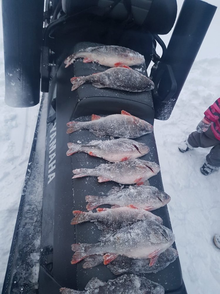31-го на подушке, с двумя Москвичами и егерем поехали в море, за окунем. Поискали в 4-5 местах, но практически не нашли. В одном месте поклевал, но плохо и мелкий. На втором месте захлопнулась дверь в подушку и никак. Инструмента нет. Вдалеке ехал буран, я интенсивно замахал ему, зная, что в буране ключи всегда есть. Завернули к нам. Ключи есть, дверь открыли, открутив петли. Коньяку буранщику плеснул, поблагодарили друг-друга, поздравили с наступающим и разъехались. Да, поймал на блесну наверное ряпушку. Улов менее десятка и это самое большее из всех четверых.
