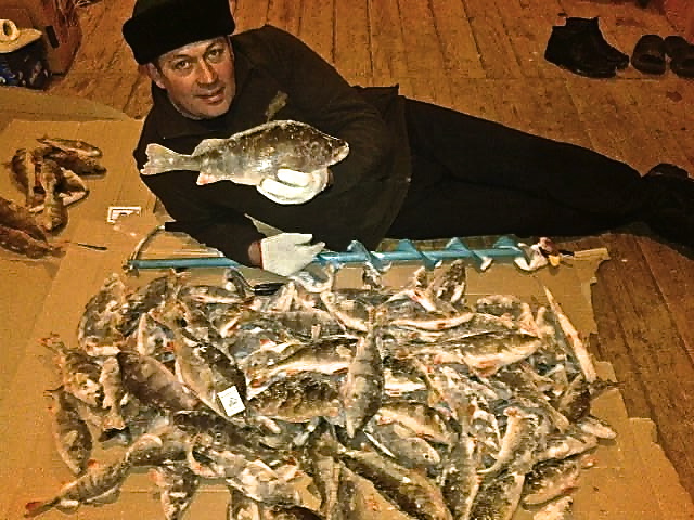 Про жерлицы Сундук написал, я добавлю по окуню. Суббота. Окунь клевал плохо. Из одной лунки не более 2 штук. Это у меня. А по заливу у всей толпы работали всего 3 лунки - от 10 рыбин и более). Окунь не крупный, до 150 гр. Поймал несколько плотвичек до 100 гр. До обеда работал маленький балансир зеленого цвета, а блесны и мармыхи любых размеров и цветов игнорировались. После обеда стала работать маленькая светлая мармышка, а остальные приблуды, рыбой отправлялись в игнор. Наверное на клёв, а точнее плохой клёв повлияла погода. Со слов местных давление 728.