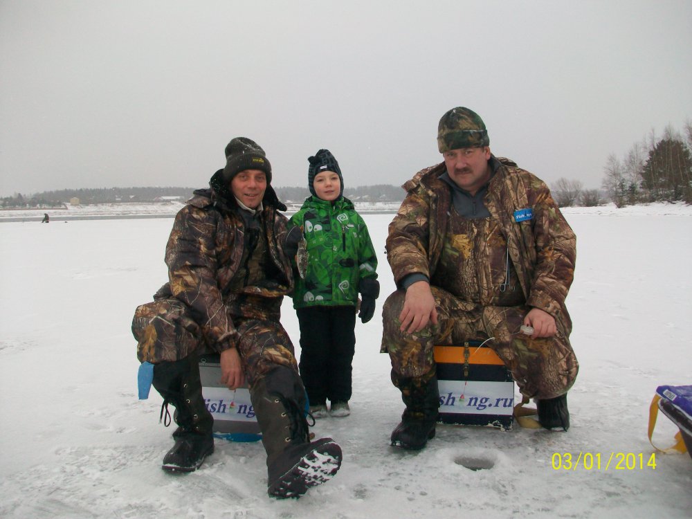 Вчера первый раз взял своего 4-х летнего сынишку на зимнюю рыбалку. Цель была - показать, как ловится рыбка зимой. Также вторая задача была - поставить его первый раз в жизни на коньки. Выехал в обед. Присоединился к Сундуку. Обе цели были выполнены - на коньки поставил, окушков подёргали(не зачётных). А Сундук словил щучку на 2250.