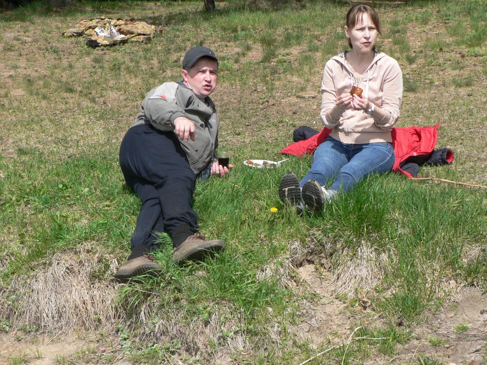Как оказалось, среди нас были «моржи», просто "любители посидеть на нежной весенней травке, знатоки чайной церемонии, "сухой" вратарь, и фанаты от рыбалки, которые могут от нее отвлечься разве, что на субботник! А прямо у берега ходили Огромные Лещи, упорно отказывающиеся клевать! Блиин, две фотки не удалось повернуть!