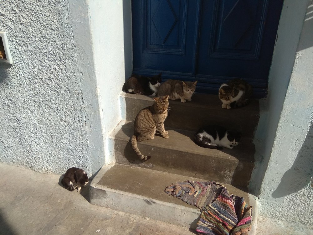 Нашли местную таверну , одни греки , всего 6 столиков , ну и помятуя как скромно и дорого нас на острове покормили , мы заказали с запасом . Когда принесли мы ох..ли . Огромные порции ! Мне даже как то не по себе стало . Ели ели , так и не доели . То есть это на 4 ых смело - 30 евро .