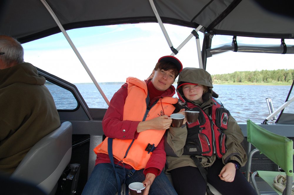 Купались,загорали,ловили рыбу и с катера и с берега,пытались собирать грибы и ягоды.Дружелюбный и безотказный обсл.персонал,отличный повар и Светлана не ухудшали нашего настроения.Ещё бы уай-фай отменить,а то младшие по началу к своим гаджетам пытались пораньше с природы вернуться...