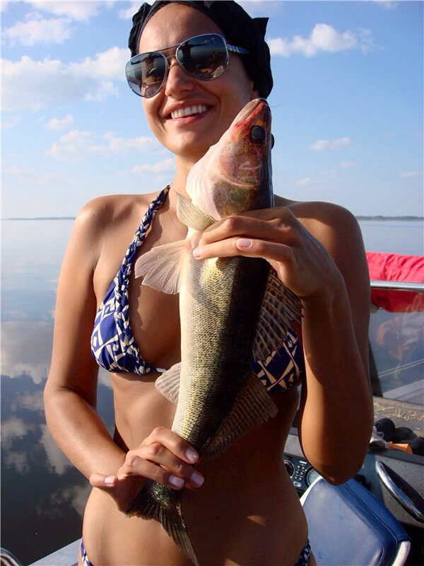 Вот ты брюзга)) Красивая девушка держит красивую рыбу в красивом купальнике)) Что тебе еще надо?