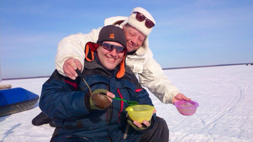 Весёлый с гостями уехал в одно тайное место << душить>> рыбу первой категории, Хирург с нашими друзьями в другое не менее тайное место, но уже за плотвой, а Лёша Читатель на снегоходе и на наших чудо- санях