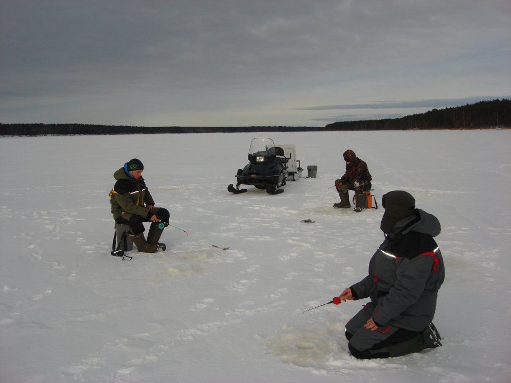 Выбрал ближайшую(54км) и поехал, где то на пол дороги в пустом море встретил группу товарищей, людей то не видел нигде, а тут несколько снегоходов, это неспроста - судачка полавливают!:cool: