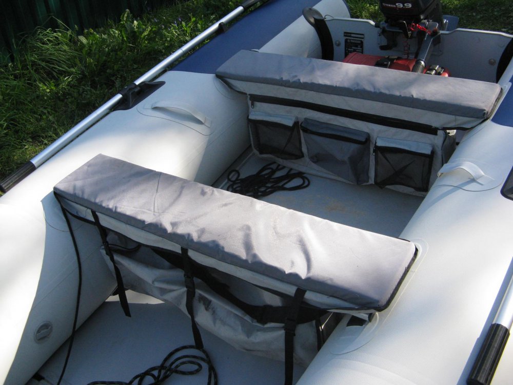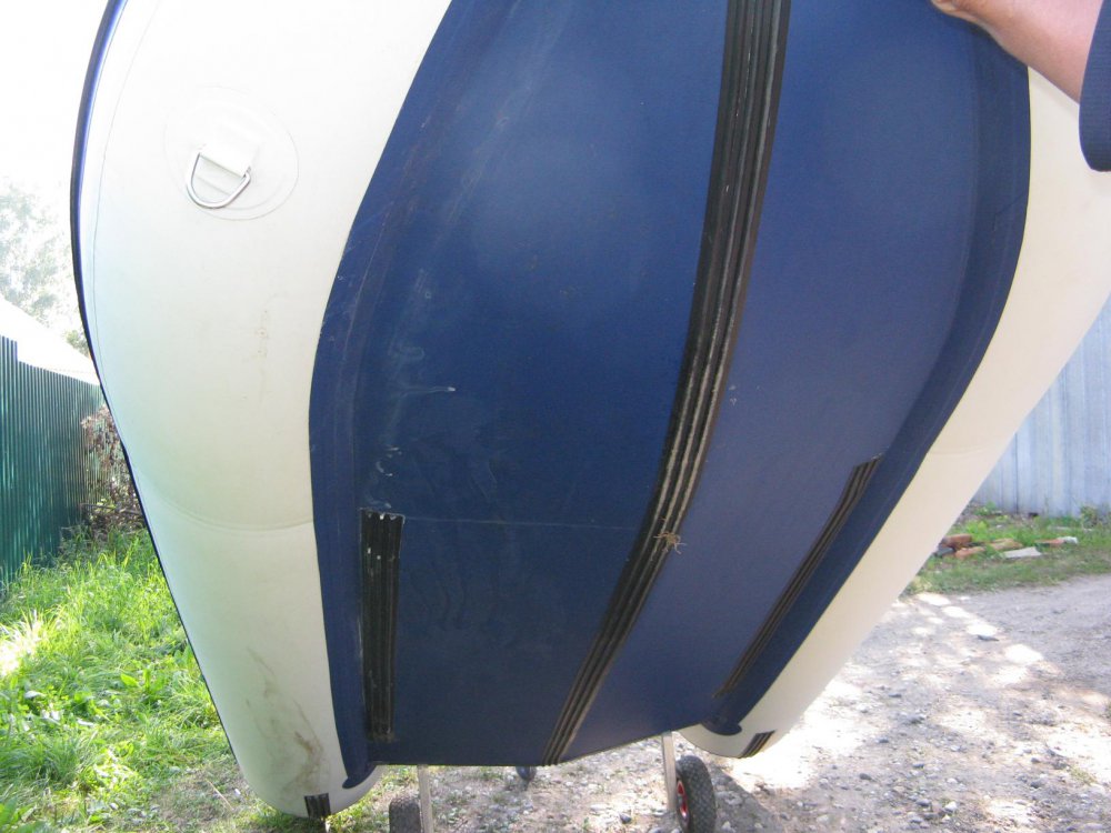 По лодке. Заплаты, неровные швы, потёртости и просто следы использования практически отсутствуют. Исключение-след от струбцин мотора на транце и немного потёрлась краска на средней слани.