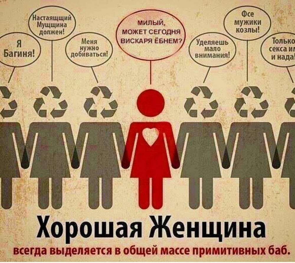 Ж Е Н Щ И Н Ы... О... Н А С... Ты хочешь меня бросить? Для начала меня надо взять... Ты хочешь завтрак в постель? – Спи на кухне. Я пойду налево, а может быть пойду направо. Я ведь – КОРОЛЕВА, я имею право на любой ход. Самые наглые в мире существа - мужчины… Откуда вылезли, туда и лезут… Все мужики - СВОЛОЧИ, а те, кто не сволочи, с теми СКУЧНО.. Женщина должна принадлежать тому мужчине, который РЕШИТ все её проблемы, а НЕ СОЗДАСТ новые. Хочу МАТРИАРХАТ! А что, прикольно... поссорилась с мужем, хлопнула пивка, отвернулась к стенке и храпишь. А он в слезах, собирает вещи и к папе, папе...