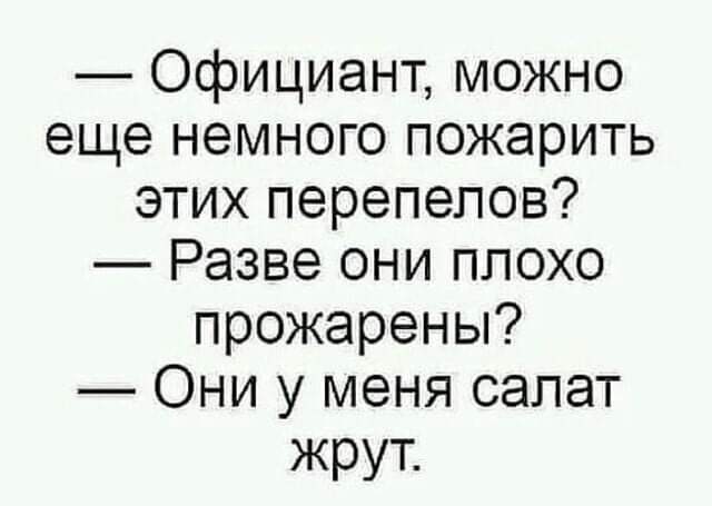 Если невезенью в жизни нет конца,сыр нареж колбаской,ебани винца! В одеялко спрячусь вместе с головой,разверните в мае-вдруг ещё живой. В наше время новое-это хорошо обколотое ботаксом старое... -Давай,пей! -Да вырвет же... -Да кто у тебя вырвет?Кругом все свои. Меня мучал вопрос:почему власти давят продукты,вместо того,что бы раздавать их бедным? И тут я вспомнил мальчика-дебила из нашей песочницы:он всегда давил куличики,сделанные другими,так как у него они не получались. У мужчин есть два главных недостатка: 1.Они всё время думают о сексе. 2.У них мысли расходятся с делом.