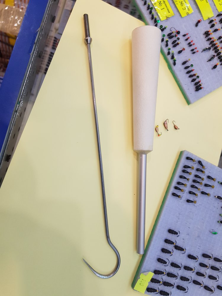 У него длина 45 см, какой толстый лед, это оружие ближнего боя, леща и плотву цеплять в лунке, когда рукой неудобно!
