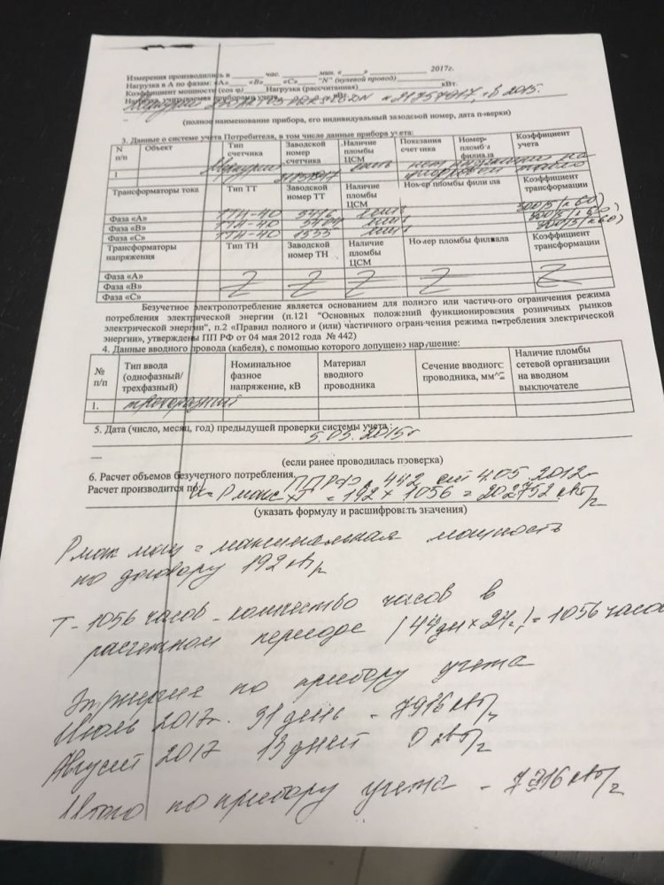 Парни, вот еще схема. Мой друг- строитель Рома попал на 1,2 млн. У Романа цех, где он готовит каркасники. Суммарная мощность по договору с энергетиками 194 kW/час. Весной пришли энергетики и предложили установить новый прибор учета с симкой для передачи показаний. Ну , и оплата пошла автоматом. В сентябре пришел энергетик - показания не поступили. Открыли с Ромой щит - ПУ сгорел. А у Энерго там была какая- то авария - вышка упала, видимо, был сильный скачек тока. Вызвали Романа в Энерго - он был в отъезде. Пошла бухгалтер, подписала акт и Рома бы его подписал. Выставили по этому акту 194кВ/час*44 дня*24 часа* стоимость 5 руб плюс штраф и получилось 1 200 000 где- то. Роман говорит, что петушинский адвокат советует ему это оплатить. Фактический расход у Ромы за несколько лет на 3 порядка меньше. Может, есть у кого положительная практика по этому 442 указу? Мне акт не нравится - не все заполнено, имхо у бухгалтерши должна была быть доверенность на подпись