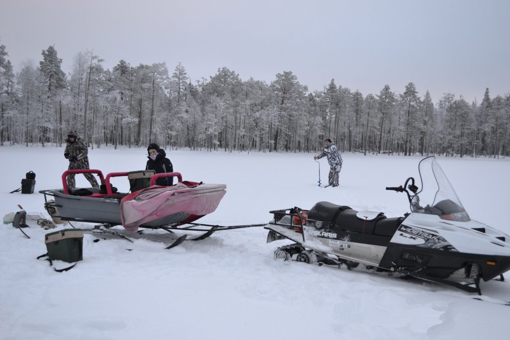 На место лова нам привезли крытые сани, где находился рыболовный инструмент и складные кресла.