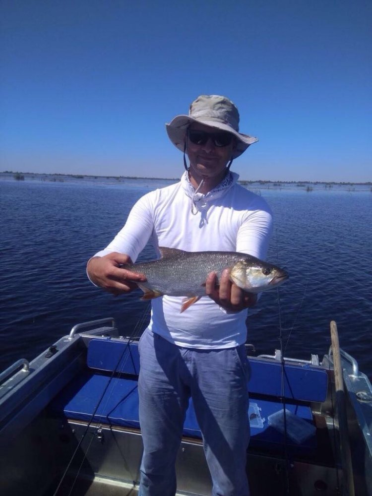 Еще один экипаж сегодня решил половить сома. По пути набрали саранчи и дело пошло. Поклевок много, рыбалка на столько интересная и динамичная, что гости не стали отдыхать после обеда и сразу же отправились половить сомов снова. 90% рыбы отпустили в реку, взяли немного сома на еду. Еще два экипажа с гостями ловили судака - судак есть, размер радует