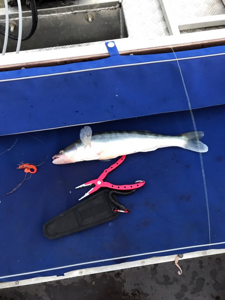 Сегодня дул ураганный ветер и добираться с рыбалки до базы было целым приключением Не смотря на причуды погоды с утра все отловились довольно неплохо: окунь, щуки, cомики. После поездки по волнам, многие гости не были уверены стоит ли выходить на воду после обеда. Но те, кто все же решил выйти, в качестве вознаграждения получили хороший клев судака и один 2,5 килограммовый бонус [​IMG]