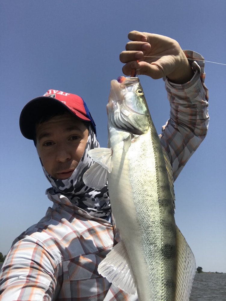 В Астраханскую область пришло долгожданное "похолодание" )))) на раскатах началась поистине летняя рыбалка: окунь и щука реагируют на поверхностные приманки практически на каждой проводке. По судаку последние пару дней было относительное затишье. Сегодня вечером с детьми выехал недалеко от базы половить бель на червя и по привычке взял с собой спиннинг поджиговать. С первого же заброса мощнейший удар и неплохой судак припаркован у лодки. Последующие 40 минут был просто сумасшедший клев, рука аж устала вываживать рыбу)