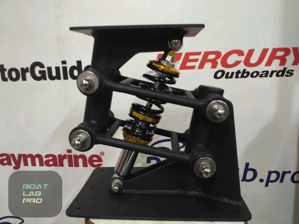 Технические характеристики: Стойка выполнена из алюминия АМГ5 толщина 5 мм, нержавеющей стали и стальных несущих тяг. Сайлентблоки используются автомобильные. Вес 10 кг., Высота 330 мм, ширина 220 см., длину 330 мм. Ход стойки 10 см. Амортизатор пружинно-гидравлический, регулировка жесткости ступенчатая механическая. Максимальная нагрузка 140 кг. Цена 19000