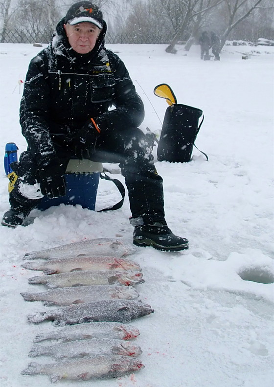 Ну вот и я... открыл зимний сезон )) Левый берег. Химки. Спортивная зона )), за 1.5 часа в потьмах )) - ни поклёвки.., рассвело и запуск )) - повесил.. Айс джиг сдуру )) - опять тишина.., рыба.. проходит мимо и не реагирует ((, спохватился.. )) и и заменил на бассдеевский ратлиночек. 45-й.. )) - тут же!., поклёвка. Ну вот.., хоть.. от нуля )) ушёл. Альбинос - замёрз.., и к тётке )) грецца уехал.., я решил.. уйти.. подальше )) В целях.., спасения ситуации )) , ставлю.. мелкий проверенный дарти )) . Один.. хороший удар ) под берегом.. - и всё. Зовут на обед.. Как всегда, вкусный плов.., кому надо )) - 100гр .. мне - не надо.., мне - ловить. Возвращаюсь..., и в первой же лунке.. - поклёвка и есть., вторая.. )) Это - уже радует.. Никто - не оббуривает )) Недалече.., ребята сидят.. на нимфы ловят )), достаточно.. успешно. Я хоть нимфы и брал с собой..., но уже - неохота. Теперь.., тока на результат надо )), т.е. понимаю.. что Дартишка мелкая - сегодня. в принципе )) - работает.., решаю - не менять ничего. До 16:30 - ещё три схода (( и три поймал , итого: 5. Нормально.., для начала )) Это - ровно стока же.., как и у Кирилла контактовского )), и у соседа.. солнцевского )) и даже.. на одну )) больше.., чем у полковника химкинского )), по состоянию до обеда )), замеченного при ловле на Випе. На пути к машине )), завесил.. - 4,55 в 5 штуках.., переводя на Вип )) - это 1365руб + 500 за вход )) бы стоило.., итого: 1865руб. Я.., 135руб - переплатил.. )), выбрав. свободу.. и безлимит. Одну рыбину - с доплатой )) сменял на.. такую же.. холодного копчения. В том году.. - не довелось (( попробовать. 4шт.. - по 2 каждой..., отдал девчёнкам.. , сестре и Альбиносу )), мне -рыба не надо.., прошлогодней.. - ещё.. полный морозильник