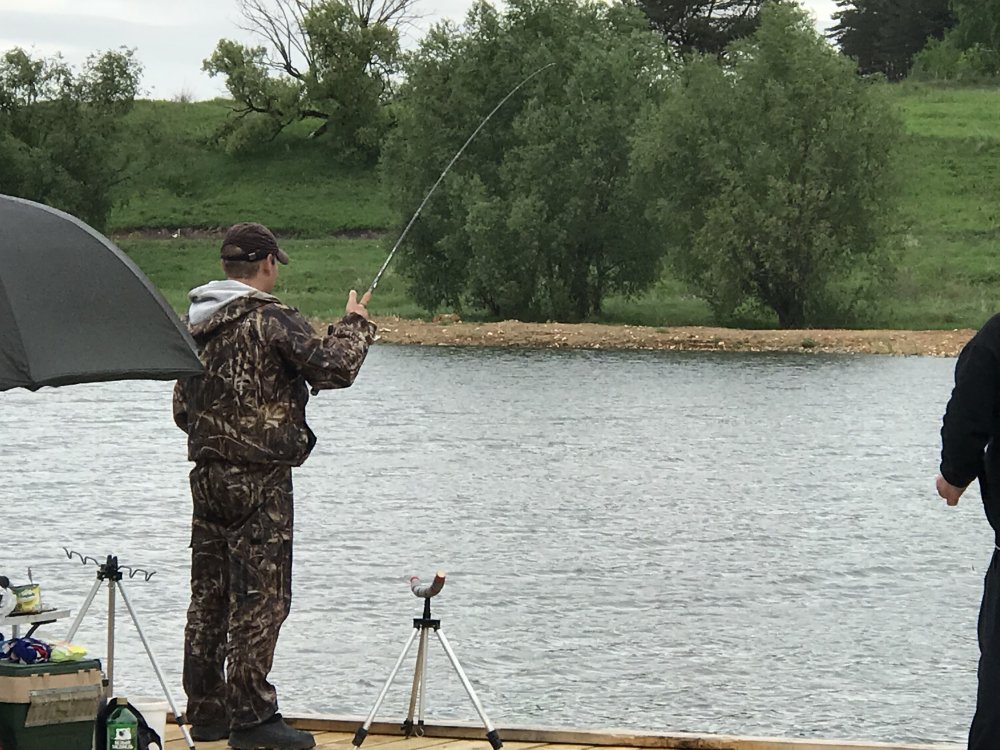 Блин...честно скажу...карп скачет аки сайгак. Клюет или нет - не знаю. Ловец был пока только один, из наших. Ловил днем 30 мин, поклевок не было, но у него обычные дубины для ловли леща на сало на Оке. А вот папан его словил за час десяток окуней и плотвиц на удочку, причем и те и те попадались достаточно увесистые. На червя с опарышем. Сегодня удалил с дальнего угла двух ловцов, вежливо, так они успели поймать пяток красноперок и плотвиц тоже. Пара штук была гр. по 200. Вокруг карп прыгал. Пока рыбы 8500 кг. Жду линя, щуку и сома. Кстати аборигенной щуки наблюдалось прилично по весне и чувствуется, как водоем "задышал" без браконьеров. Карп самый крупный пока 3500, но он далеко не в штучном варианте. Думаю пр.20-25 карпа 3-3.5. От более крупного 5-6 отказался - вид не товарный. Тот, что есть вкусный, жира совсем не много, сам попробовал . Думаю, что формат после официального открытия будет 500 с носа для всех после 12 ти лет. Входит только причал с садком на 2-3 чела. Беседка с мангалом будет отдельно. Рыба 300 за кг. отдельно. сколько поймаешь. Пока просто за рыбу, если поймаешь конечно Ессно все эти окуньки и плотвички - бесплатное приложение. Что то может несущественно поменяться.