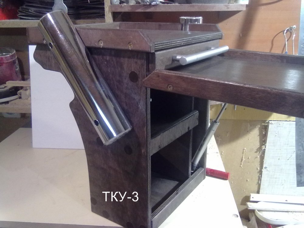 Всем добра.Продолжаю тему о столах под эхолот и АКБ,при этом с доп.удобствами. Фанера ФСФ(влагостойкая).12мм.+двойное покрытие латексом-акрил(прозрачный). Откидной столик с нагрузкой 80N,что с уверенностью в 100% легко выдерживает термос 1,5кг. или "полторашкой"(с запасом). 2 полки-под АКБ до 12 Ач. и "бардачёк". Выдвижной ящик 220*150мм. фиксируется(при закрытии) магнитом. Ручка-рейлинг удобна при стоячей рыбалке с лодки(при смене приманки)фиксируется на ручке. Крепление лик-трос-лик-паз(авторское ) что увеличивает диапазон радиуса баллонов от 36см.до 55см. Морение по желанию 2х. цветов(дуб и орех). Для удобства и комфорта ручка-рюмочница,с помощью которой удобно переносить консоль вместе с АКБ и картплоттером. Размеры девайса;В-320мм.,что позволяет использовать и на НДНД,и пайольного типа лодках.,Ш-260мм,Д-260мм(столешняя верхняя и откидная). ТК-1,-Тумба-консоль с одним отделом под АКБ-2000р. ТК-2,-Тумба-консоль с 2 отделами под АКБ и "бардачёк"-2350р. ТКР-1,-Тумба-консоль с ручкой-рюмочницей,1 отдел под АКБ-2350р. ТКР-2,-Тумба-консоль с ручкой-рюмочницей,2 отдела под АКБ и "бардачёк"-2550р. Цена на тумбы без универсального крепления "лик-трос-лик-паз".Консоли устанавливаются самостоятельно с помощью запилов под ваш лик-трос.Модели с 1 отделом легко вмещают в себя АКБ 18Ач. Дополнительные опции;- Универсальное крепление"лик-трос-лик-паз"+500р. Морение+300р. Прикуриватель+400р. Есть модель с полным "фаршем";-ТКУ-3 с прикуривателем,морением и креплением-3550р. Установка и расположение труб-спиннингодержателей по желанию. Все модели успешно катаются по России и зарубежью около 3х лет.Для связи-89139603679.Александр.