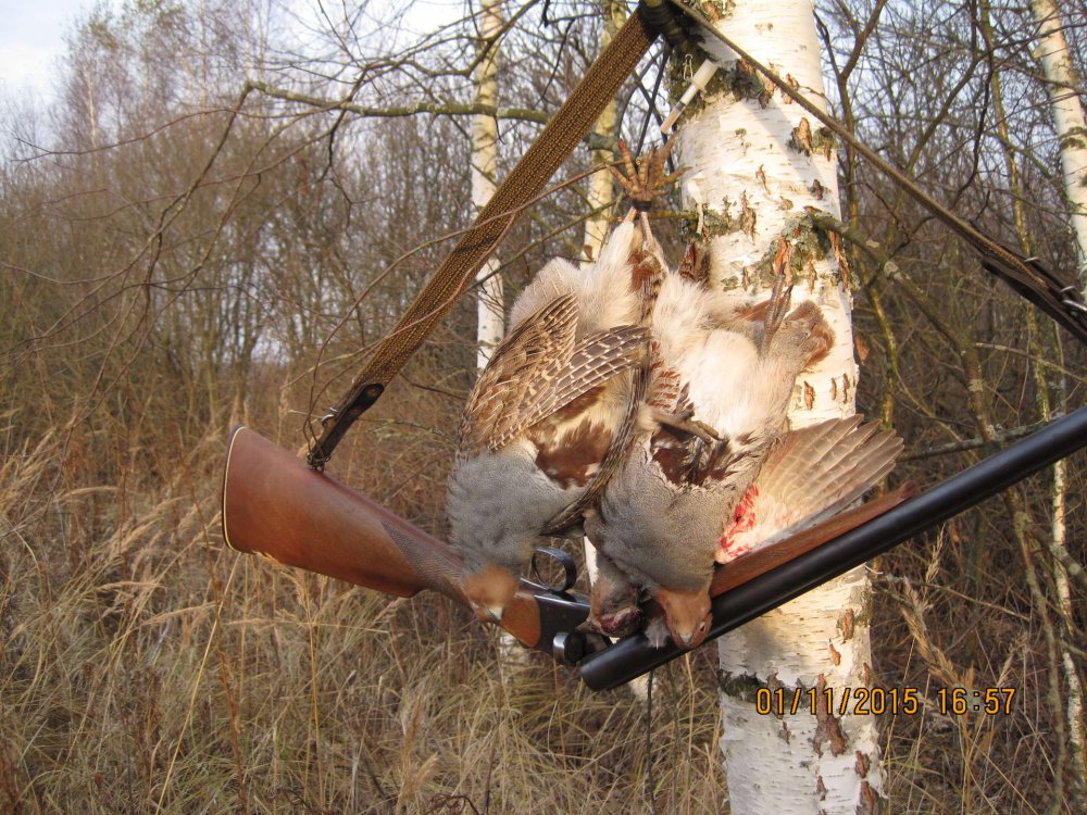 Я вот вчера ходил на дальний кордон, на разведку. Нашли две стайки куропаток, кормятся на зеленях, близко не подпускают, хотя собака их далеко чует. Первая переместилась в некось, одну стрельнул, а второй выводок вообще на пашне кормился. Когда собака встала, я не поверил. Долго всматривался, так никого и не увидел, а они похоже отбежали метров на 100 и поднялись. Выводок нецелованный, штук 20, метров 300 пролетели и опять на пашню сели. Хотел их обойти, в некось толкнуть, там они могут близко подпустить, но как сквозь землю провалились, даже собака след не взяла. Ну и пусть живут, на душе радостно, может до весны доживут, расплодятся.