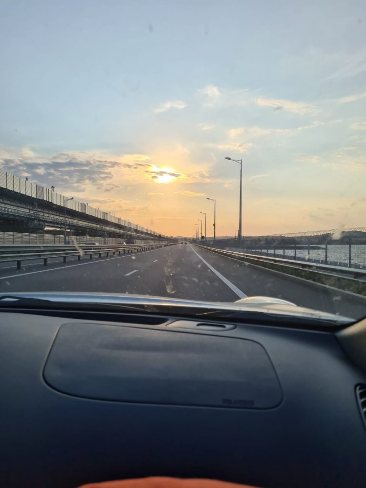 Итог первого дня - почти 1200 км. На второй оставалось 700, из них половина по обычной двухполосной дороге... Итак, мотель мы покинули около 12 дня. Дальше нас ждало несколько приличных пробок, в-основном из-за ремонта, несколько переездов, несколько смен маршрута по инициативе навигатора, шикарные Крымский мост и трасса Тамань. И вот мы в Крыму, в Севастополе оказались около 10 вечера... Пара зарисовок по пути: Потом встреча со старшей дочкой. А сегодня (то есть вчера уже) у нее был День Рождения. Мы с женой остались на хозяйстве, а девушек отпустили на пляж и в бар повеселиться и немного отдохнуть, только вечером они явились на рюмку чая... А сейчас опять смотались гулять, оставив нас с женой одних. Чувствую себя старым пердуном. Завтра сами уже тоже на море поедем, а заодно надо присмотреть рыболовные магазинчики...