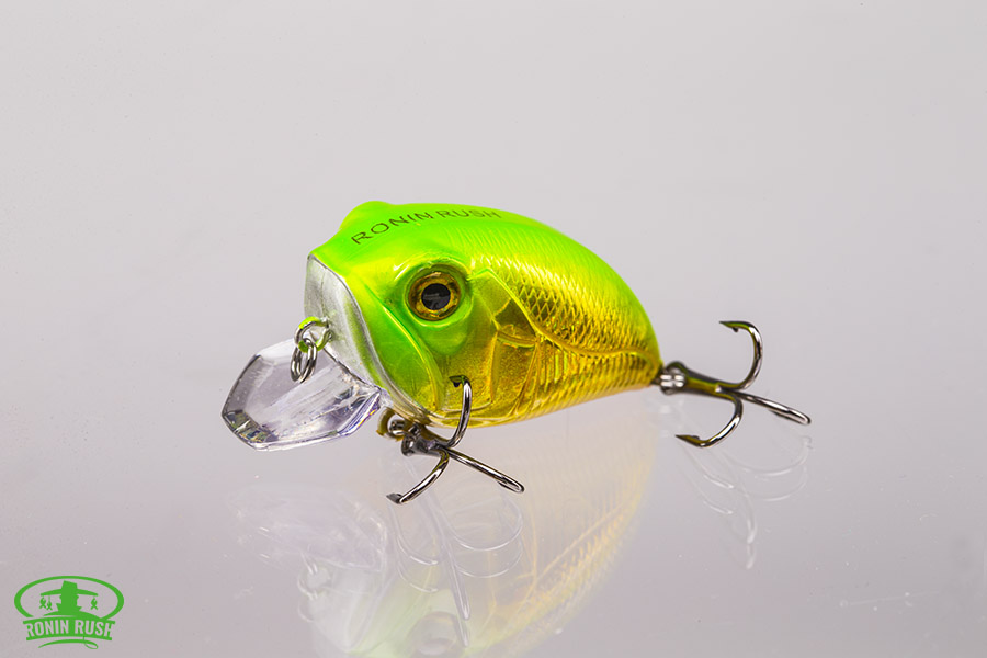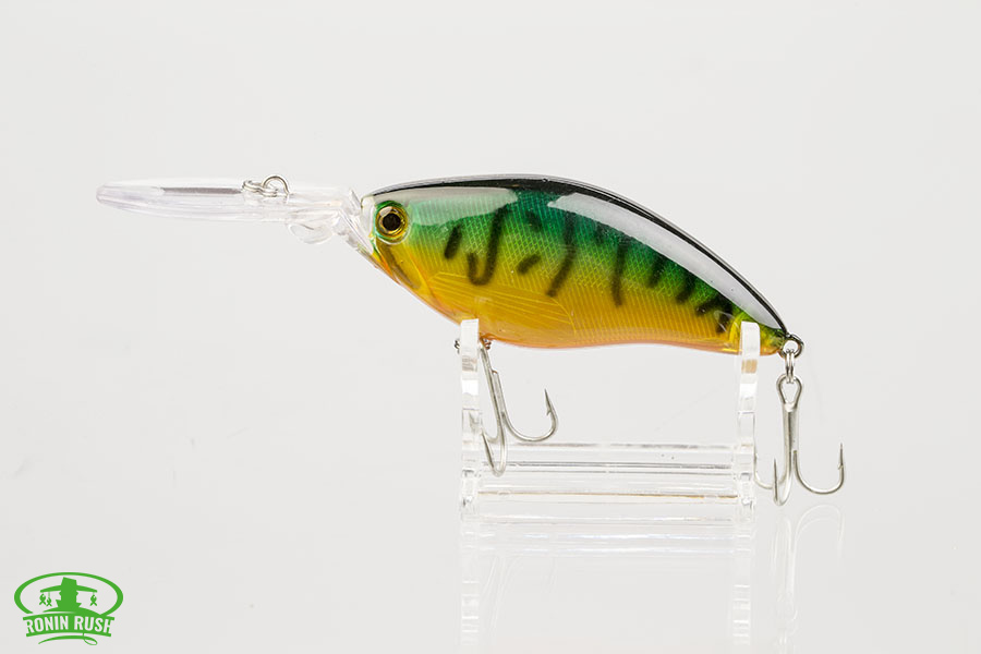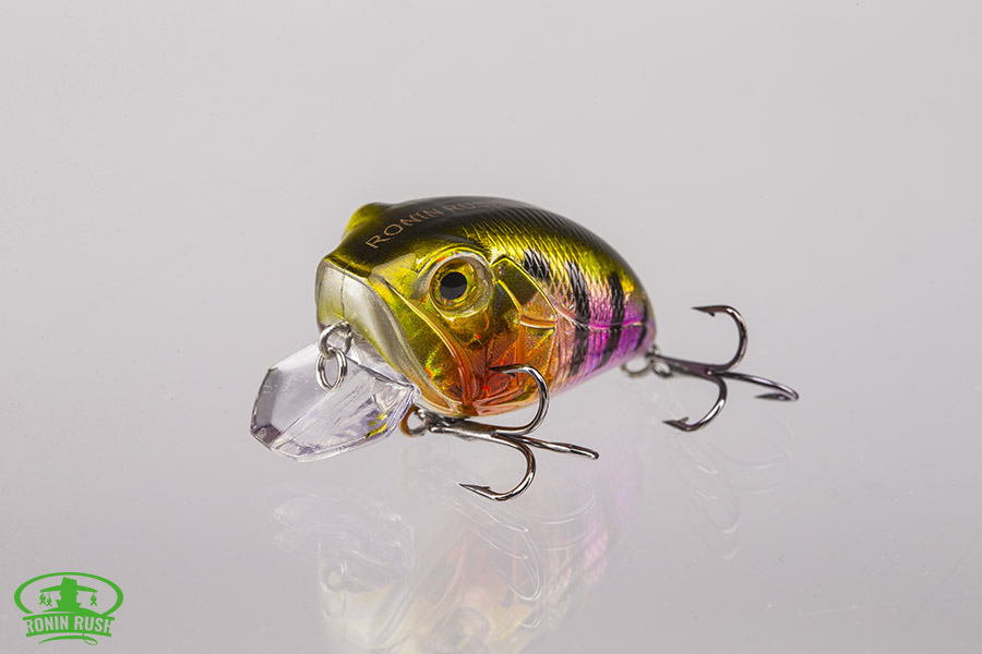 RoninRush 3 DCrank – это широкотелый крэнк с активной размашистой игрой, выманивающей хищника из глубоких закоряженных мест. Этому дополнительно способствует шумовая камера со стальными шариками, издающими колебания и шум. Голографический слой и 3D глаза очень точно имитируют внешность живой рыбки. Рекомендуется равномерная спокойная проводка. Воблер стабилен как на течении, так и в спокойной воде. Подойдет как для ловли в заброс, так и для троллинга. Хорошо работает по судаку, щуке, крупному окуню.