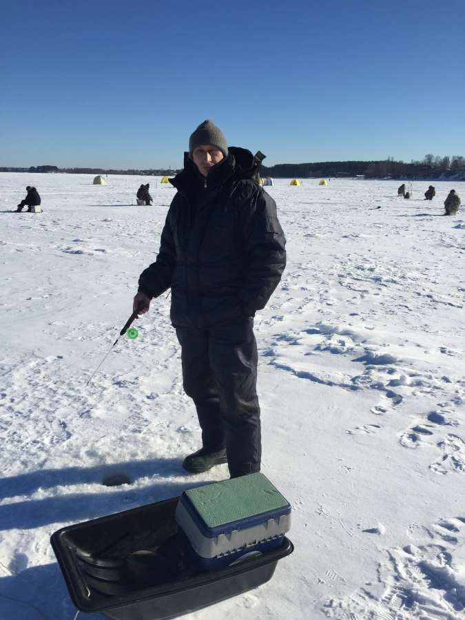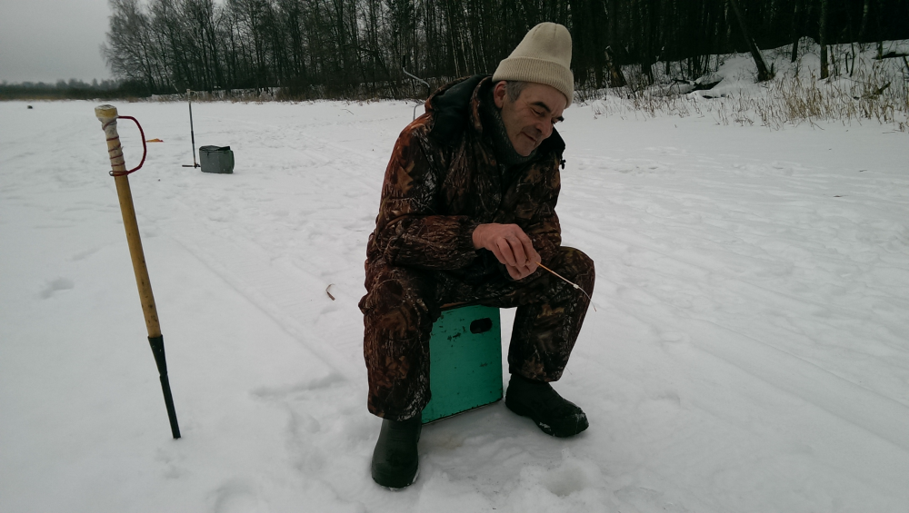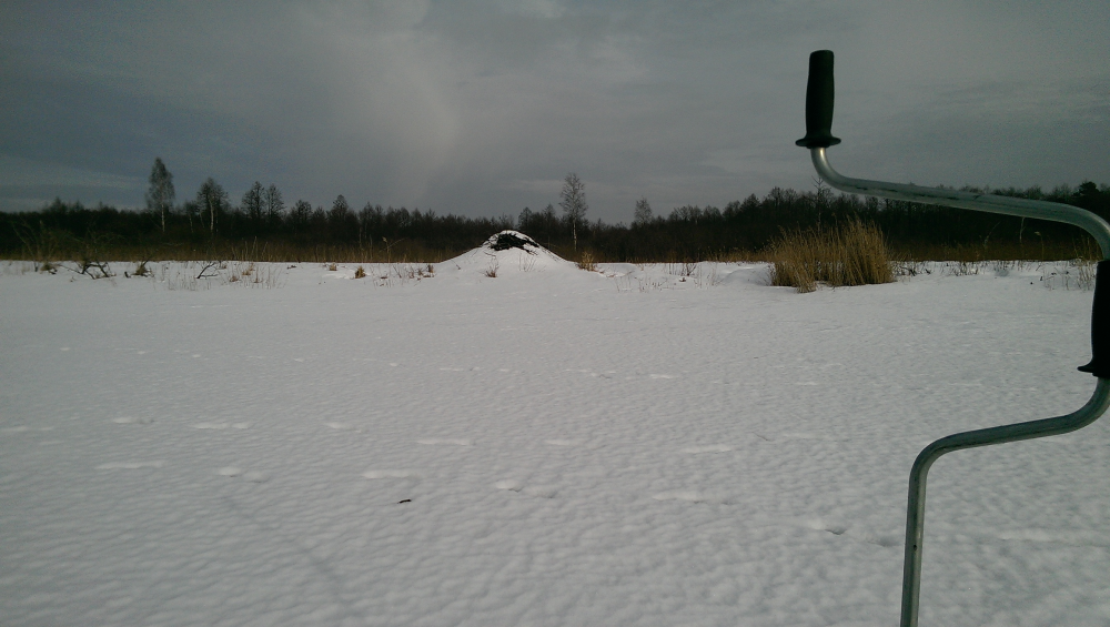 Ветер и не думает стихать. И не просто ветер, а настоящая пурга. Метров 15 в секунду, я думаю. Мы активно ищем, и наш лидер опять ловит судака. Мне же опять достаются только окуня. А бедный Лелик боится отойти от квадроцикла, так как ему и за ним некомфортно. Лунка же оказалась пустой.