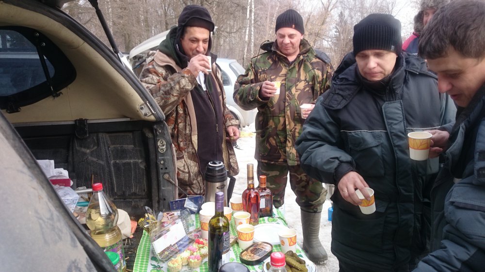 У батюшки, как всегда хорошо и гостеприимно, и уйти без живительных напитков с дороги мы не смогли, что привело к явной задержке начала старта. Так как денег за просмотр техники с местных мужиков мы брать не стали, то все-таки в 12.00 нам удалось тронуться в сторону рыбалки.