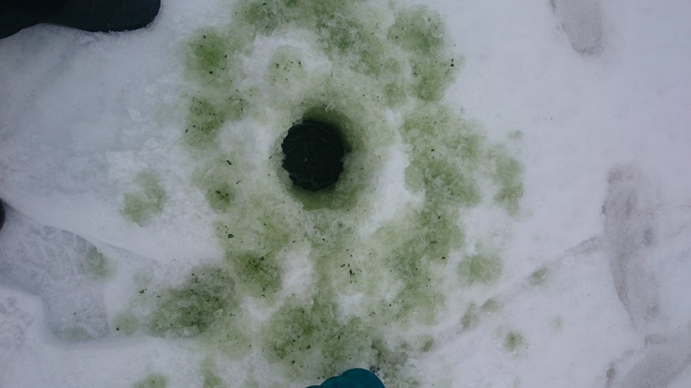Но , все равно было очень хорошо. Перед уходом Андрей умудрился опять поймать щучку. Около 1 кг.. Амнистировал. Щука вся облеплена Пьявками :) Только шевельнулась. Будем надеятся на последний лед. Если он нас не подведет :( Уж очень быстро все тает:(:(:(
