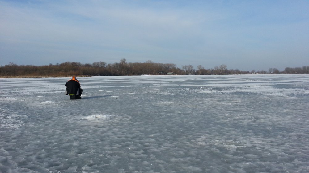 К 13.00 были на точке. Разнообразные группы товарищей пьют и закусывают. Не сознательные граждане ловят. Правда, без результата. Возможно, он был раньше, но нам не докладывали, а идти знакомиться, почему то не хотелось. И мы разбурились. Я сначала делал это вручную. В прекрасный солнечный день делать это было одно удовольствие. Первые две лунки. Потом я снова задумался о шуруповерте. Так как рыба не ловилась, в ход шли известные средствА. Они не помогали, но время съедали качественно. Если все вокруг занимаются тем же самым, устоять сложно.