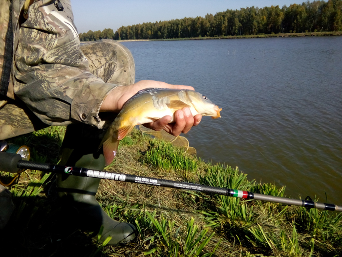 Поймал почти весь видовой состав : карпик, белый амурчик, карасик, окунёк. Не смог поймать только линя, но его никто не поймал, может его там и нет...:-\:)