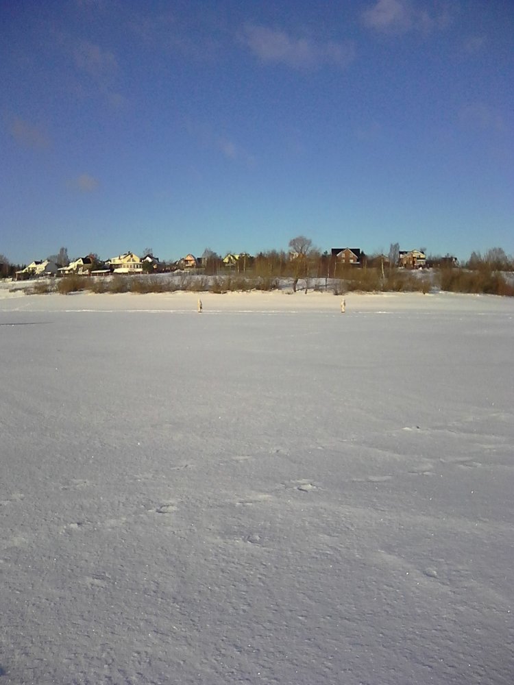 Вчера, Смолячково. 2,28 км по навигатору. До прошлогодней точки не дошли, т.к. упёрлись в трещину. Учитывая то, что вчера приключилось в Коккорево (спасательная операция) и силу ветра решили не рисковать...