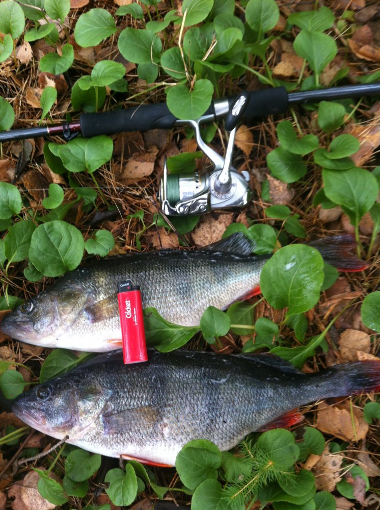 После сытного обеда на берегу пошли ниже по течению.Серега решил покимарить пока крошечки улягутся,а я нашел интересное местечко...уходящая коса от берега,на косе сходятся прямое и обратное течение,лежит бревно и дно порядком закоряжено ветками.Бросаю под самый берег,на второй ступеньке-тук и окунь чуть меньше первого на кукане,второй заброс и снова поклевка,но уже шнурок не съедобного размера отправляется в родную стихию.Затем еще пара не реализованых поклевок,а затем тролингисты пид@расы...которые проплыли между мной и берегом при этом зацепив мою приманку своими воблерами...пока расцепляли их снесло точно на косу,как итог рыбка от туда свалила и поклевки прекратились.Ругаться не хотелось и так настроение никудышное,никакого рыбацкого такта в этих людях и подавно не было...