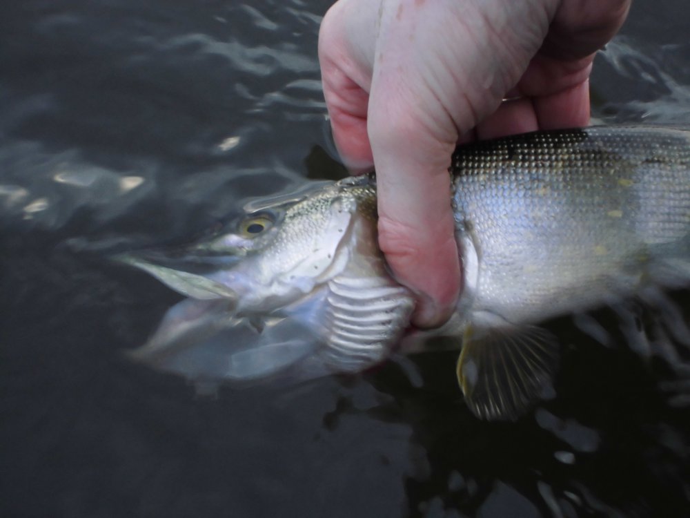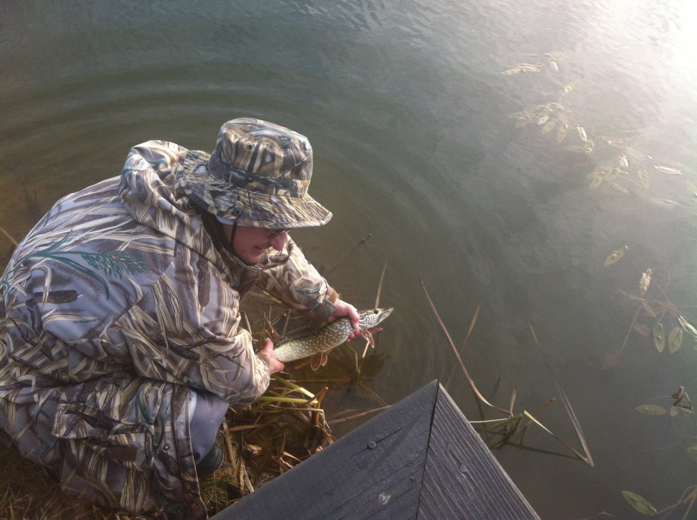 Сегодня любимый водоем, береговой джиг отпал сам собой, из за гнилой плетенки, купленной недавно.... где не скажу>8D. Поэтому ввели второй пункт плана, тростниковая щука, здесь все сложилось:dance:, пять зубастеньких от 800-1300, и окунек гр на300. Две рыбины обрели новую родину, и были благополучно доставлены на домашний водоем. Брала рыбка только на вертушку, что у меня , что у товарища и то на один единственный тип, все остальное в игноре, в два часа решили, что морозить Фаберже смысла не имеет, и рыбалку закончили . Как всегда у товарища после слов" ну все крайний заброс " прицепилось, что- то ужасное, кила за два, при попытке припарковать к берегу, благополучно соскочило:cry:но нас это расстроить уже не могло.:rofl:воздухом надышались , на общались , даже солнышко периодически выбегало, из -за тучек.