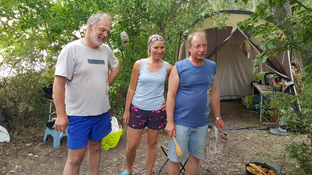 Напротив мыса, на одной из остановок нашёлся активный бёрш, который не менее активно был выловлен Юрой на отводной поводок. У меня же на джиг реализация прихрамывала. Активных бершей было штук семь, мы их быстро выловили и пошли уже на базу, где нас ждал завтрак и отдых.