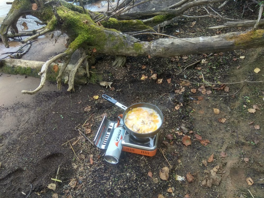 Погода сказочная. Причалил к берегу днём , пожарил яишенку , красота ! Теперь есть куда и горелку и посуду класть . Рыбочиску даже подключил и рыбу почистил .