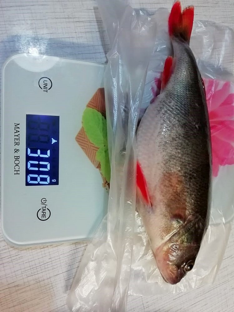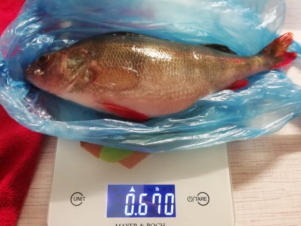 Рыбу я редко беру, ну и в этот раз отдал ему. Присылает мне фотку с моим окунем на весах.