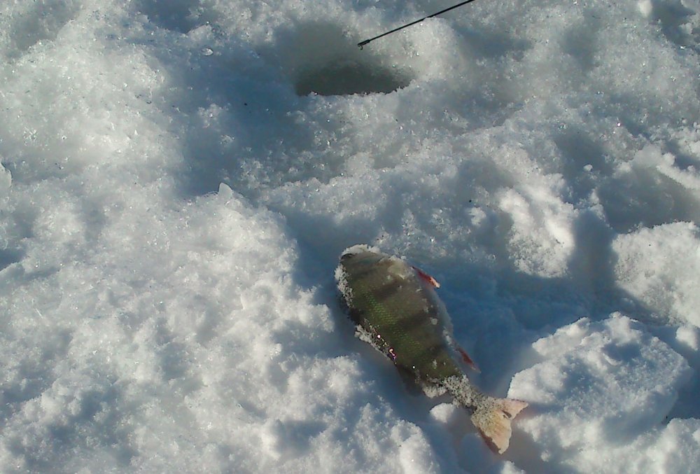 Так каждый в своих мыслях и дошли мы до вчерашнего места моего лова, где провернулся хороший окунь. Снег и легкий мороз закрыли от глаз промоины и теперь уверенно можно было ходить только по очертанию вчерашних лунок. Ну, а выход за периметр был не предсказуем. Где семь сантиметров спрессованного снега, где его больше, не поймешь?