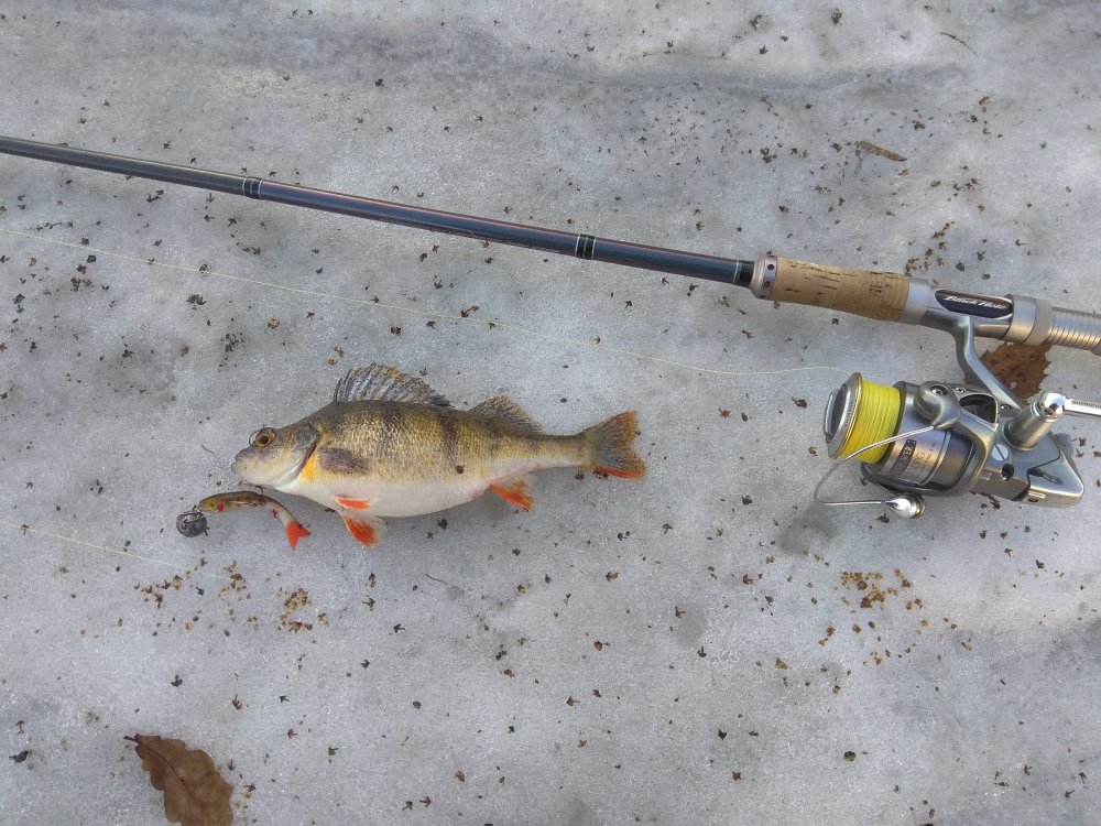 Вчера "закрылся" на Яузе. Сразу скажу про лёд. Толстый, "жёсткий", - процесс распаления ещё не пошёл, но сверху тонкий слой воды и ОЧЕНЬ скользко. Полтора км шёл час, наверное. Как оказалось, шёл зря, так как клевало, если это можно было назвать клёвом, "не очень" (мягко говоря). Лунки с десятой только увидел первого окуня. Всегда кажется, что раньше столько лунок не бурил, но в этот заезд уж точно рекорд бурения (мой личный) был побит. Один перспективный с моей, (а не рыбы) точки зрения заливчик, со впадающим в него ручейком, разбурил квадратно-гнездовым методом, не оставив живого места.:D Результат - плачевный. Потихоньку побрёл в обратную сторону, побуривая и иногда полавливая мелочь. Всё-таки тройку "бонусов" - на фоне всего остального взял. Мелочь по предварительной договорённости отдал на уху товарищу, а эту "троицу" забрал домой. Вот такое "закрытие сезона".