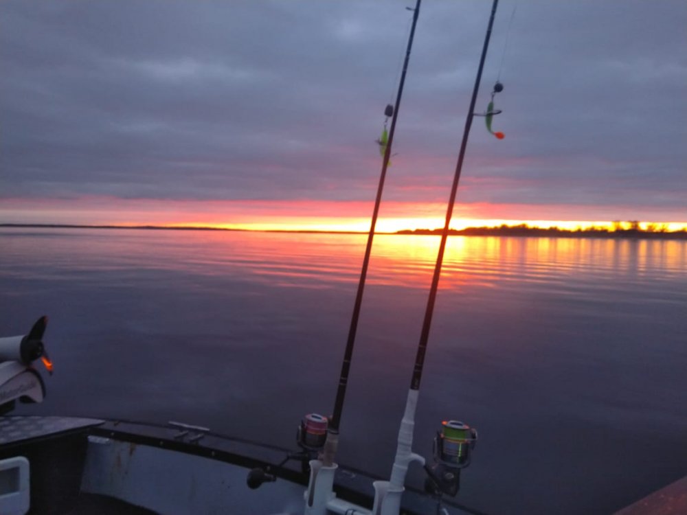 Рыба мелкая, щуку крупную как сдуло или полный стопор у нее. Размер которая вешается 200-600 грамм, санкционная, т.е за борт. После обеда поймали трёх судачков 700-1200. В общем кисловато. Завтра попробуем еще разок и наверное пора завязывать, вроде морозик идет.