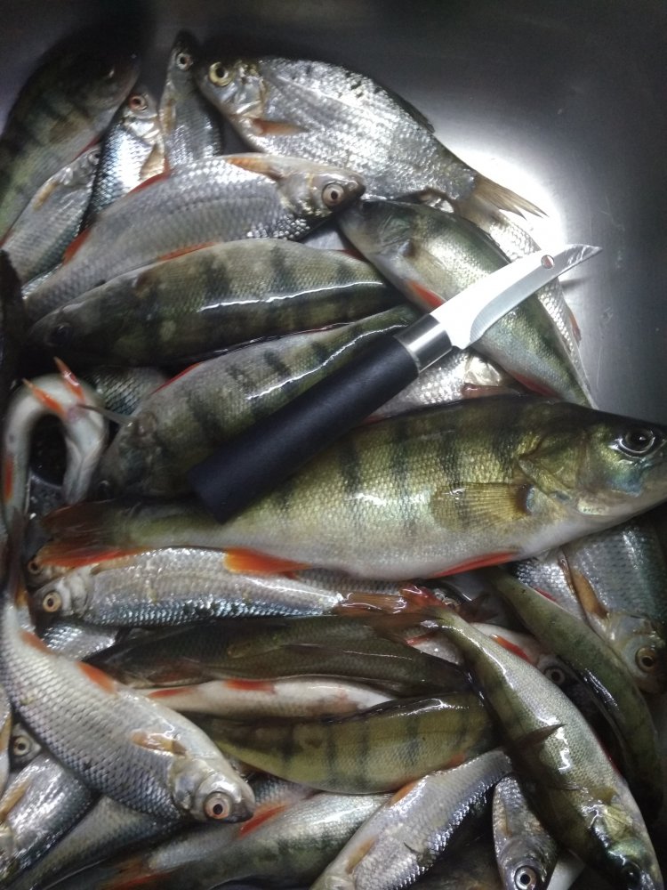 Окунёк пощипал с утра. Очень много мелочи. Взял товарищу с десяток вот таких...