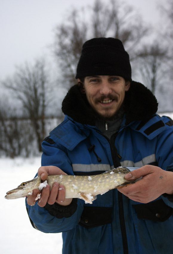 На моих глазах, за 15 минут до финиша, свою удачу, и не за хвост, а по честному, в рот поймал прошлогодний чемпион. За самый краешек губы. Без поводка. На мормышку. Если бы он ловил на жерлицы или балансир, то можно было бы сказать, что он поймал щучку. Но чемпион ловил на самую тонкую снасть и на маленького свинцового муравья с белой бусиной. Никаких поводков, леска не толще чем 0.1, а щучьи зубы при этом были самые настоящие. Ведь пойманная рыбка потянула на 730 грамм и оказалась самой большой пойманной рыбой в этот день. До этого были пойманы несколько щучек по 350 и 400гр. Были обрывы и сходы, сломанные крючки и откусанные мормышки. И вообще это был щучий день. Но вот чтобы на 730 грамм и за 15 минут до финиша. Что бы одним ударом, одной пойманной рыбой, за несколько минут до окончания соревнований взять и снова стать чемпионом, ну ведь так не бывает.