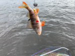В итоге, только в пятницу удалось выехать, а до этого покатались по заливчикам с нулевым результатом, поимев по паре поклевок. В море тоже не заладилось на первых двух точках. И в споре, что лучше поролон или резина была уверенная ничья. Это мы с Костей решили придать интриги передаче, и замутили спор о лучшей приманке. Он ловит только на некрашеный поролон, а я на любую резину. И вот повез нас Романыч на свой коряжник. Приехали. Торчат из воды коряги во все стороны, а перед ними, вроде как, безопасно. Оказалось, что это не так. Дно было точно таким же. Плюс глубина там не больше метра. Ловите, говорит. Что на поролонку здесь ловить бессмысленно, понятно сразу. Но Костя от затеи решил не отказываться и забросил белую рыбку в пучину. Сразу поимел поклевку, но форсировать не стал, и рыба оказалась в корягах. Обрыв. Пока я понимал обстановку, тоже оборвал две чебурашки с офсетником, хотя офсетник был правильный. В итоге пришел к выводу, что прямой джиг здесь ни хрена не получится и надо тупо, после падения, сразу тащить приманку над корягами в 20-30 сантиметрах от воды. Понятное дело, со сложной анимацией. )) И заработало!!! Резина от LuckyJohn опять порадовала. В итоге 3 судака и один сход у лодки. Отличное завершение передачи. Но офсетник я загибал раз сорок. Костя же оторвал 18 приманок, что, говорит, никогда не делал. А я еще раз порадовался за палочку, ибо в деле опять были 10 грамм, хотя можно было бы и меньше поставить. Плюс такой нюанс. Я выбрал в этот раз шпулю с толстой плетенкой и это очень помогло.