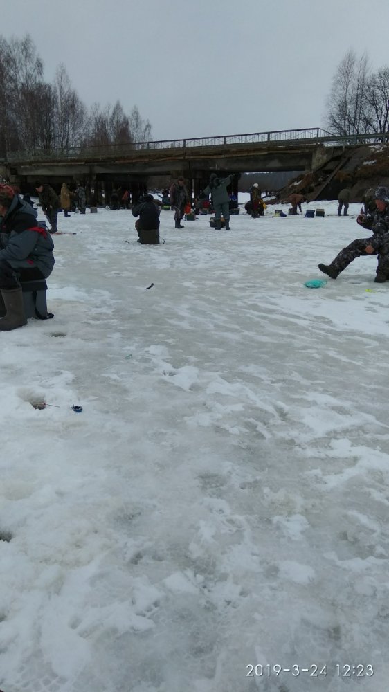 Чеснава 22 марта: до 12 дня электрики заменили вводной на счетчике + контакты какие то поджали (на верху столба) и все стало вуаля! Можно и на реку выдвинуться. А там народу.... и по всей реке. На своем месте на чертика с зеленой бусиной, глубина 3м. - стая густеры (100-200 гр) - много. Отобрал "на пожарить" и пошел искать плотву поменяв черта на мормыху. Камеру в лунки, под берегом не видел ни одной. На русле нашел и даже леша в камере вальяжно проплыл, глубина около 3,5 м., мормыху не тянет течением, НО - даже не притрога, что за фокусы. Тем временем под автомобильным мостом группируется народ. Подошел.., проскакивает 150-200, так же есть и подлещик. На первой же проводке резкий прижим и язь на вид 300 гр. на льду. Далее, меняя лунки подловил плотвы мах. до 200 гр. и так как ночью ехал, в хоромы переместился... принять допинга под жареную рыбку, что бы остались силы на баню. Кстати, поймал на Чеснаве не менее 6 мелких судачков с ладонь, всех благополучно амнистировал. Сутка (Борок) 23 марта: от кораблей на стрелку попал к 8-30. Народ распределен, значит пока нет активного клева/обуривания - закон Борка. Безмотылка, пробую на глубинах от 6 до 1,5 м. Нет поклевок. Не считая ершей и окуньков со спичечный коробок. С подсадкой мотыля видел попадается, но не та которую ждем. Свалил в 13-30 Москву досрочно. Знакомые остались до вечера, подловили не крупной плотвы после обеда, но вся до 200 гр. и редко. По слухам, ловилась во вторник и в четверг. На следующие выходные сгоняю еще разок пожалуй, лед позволяет, да и погоду рисуют не критичную что бы быстро сошел. "Нужно же все же попасть в нужное время", по слухам это были прошлые: вторник и четверг, в пятницу уже долавливали, потом обрубило. Итого, кто не был, много не потерял, давление менялось, видимо рыба в ступоре была.