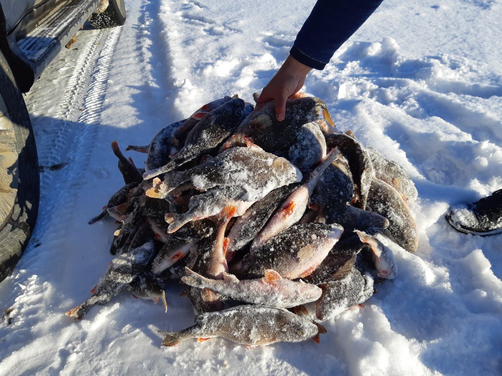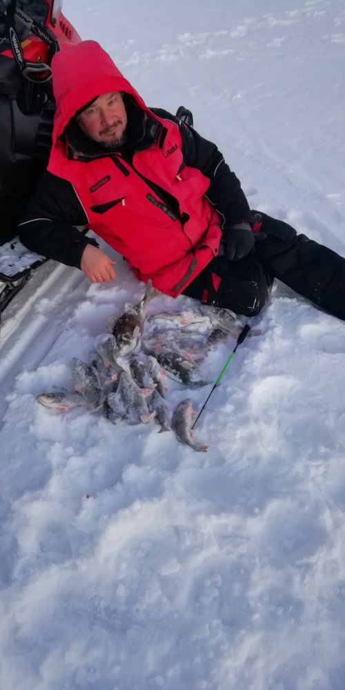 Сегодня завершающий день. Поехали на трещину старую, где под вечер вчера стайку зацепили. Но сегодня хуже раза в два: 15 против 28 шт. Только с одной лунки удалось 3 шт дёрнуть, а так разрозненно. Ближе к 16 проезжали старое слудяное пятно с коркой льда. Там у папы сход чего-то хорошего, у меня сход, потом с другой лунки двух 200-250 дернул (это прям ныне крупняк), потом папа мелкого, потом я одного с другой лунки. Потом самого толстого ворон у нас спиздил)) И как пурга стала приближаться всё затихло. А всё равно хорошо!!! На обратной дороге в такой слуд мощный влезли, ох и помудохались... Ну главное с папаней вместе съездили, кил 10 окуня за 4 дня насобирали.