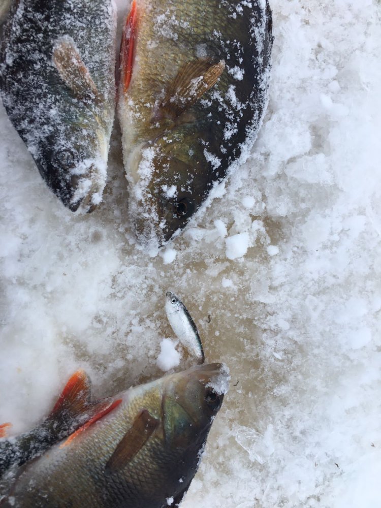 Я это к чему спросил.Наблюдая пустые подходы и перебирая балансиры и лунки,повесил блесенку,и тут же, мгновенно,уверенный подъём-удар- и окунек на льду.Вот бы и дальше было поисках побегать с ней,но время вышло и надо было уезжать.....