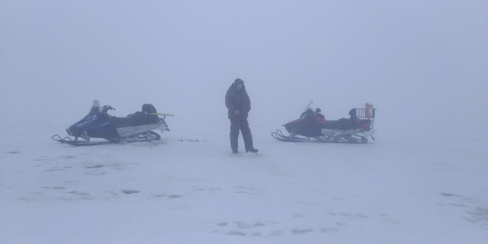 Первый день все в радостном возбуждении быстро позавтракали и погнали на точку которую нам дали по секрету ))))... конечно чуда никто не ожидал но и проехать мимо не смогли )))... на точке как было сказано удача нас не ждала и мы помчались дальше ... как то так сложилось что мы с Тихоном больше ловили вместе с Карасем и Мироном а ГСА и Рыбак катались в моно поиске , но тоже были обычно недалеко ... Почти сразу начинаем все ловить у меня клюет окунь солидного размера и пытается удрать уже показавшись из лунки , но конечно не на того напал и был извлечен и взвешен , потянул на 0,94 кг.... ну и дальше все было очень весело ....