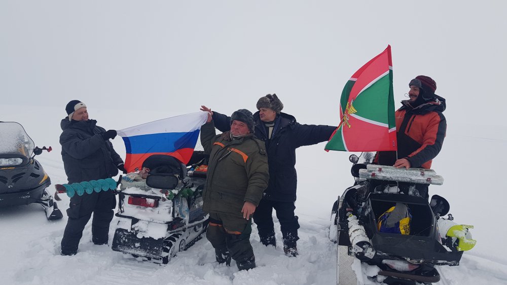 В честь тридцатидневного пребывания Саши на льду сегодня вечером состоялась встреча друзей и были подняты флаги8
