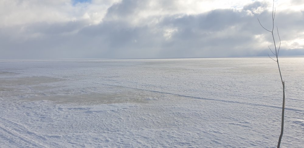 @Volga СП, С утра просто тучи, с обеда снег с дождем...+1 Окунь бастовал. За 4 часа 6 штук Не знал, куда двинуться. Дорога от сьезда с ЗК упала еще вчера, тракториста не нашел, боялся, что не выехать на Сить. Встал в 8.30 и час копал...ночью с крыши сьехал снег перед входом в дом, под 2 метра в высоту бруствер. Короче замуровали, демоны. Поехал на снеже, понял, что по дороге на машине оччень осторожно можно будет проехать 2 км до льнозпвода...ну и поехал на море Зрелище конечно бурых пространств с 5 км буранки удручает, куда глаз видит. Доехал до конца, до 12 км, посмотрел в БТ угол и до якоря - ну нах Свернул на 10 км, 2 км отн.сухого пространства, приехал к одному из своих пятаков. Но с 11 до 16 - 6 поклевок. Все попались 20 см под льдом